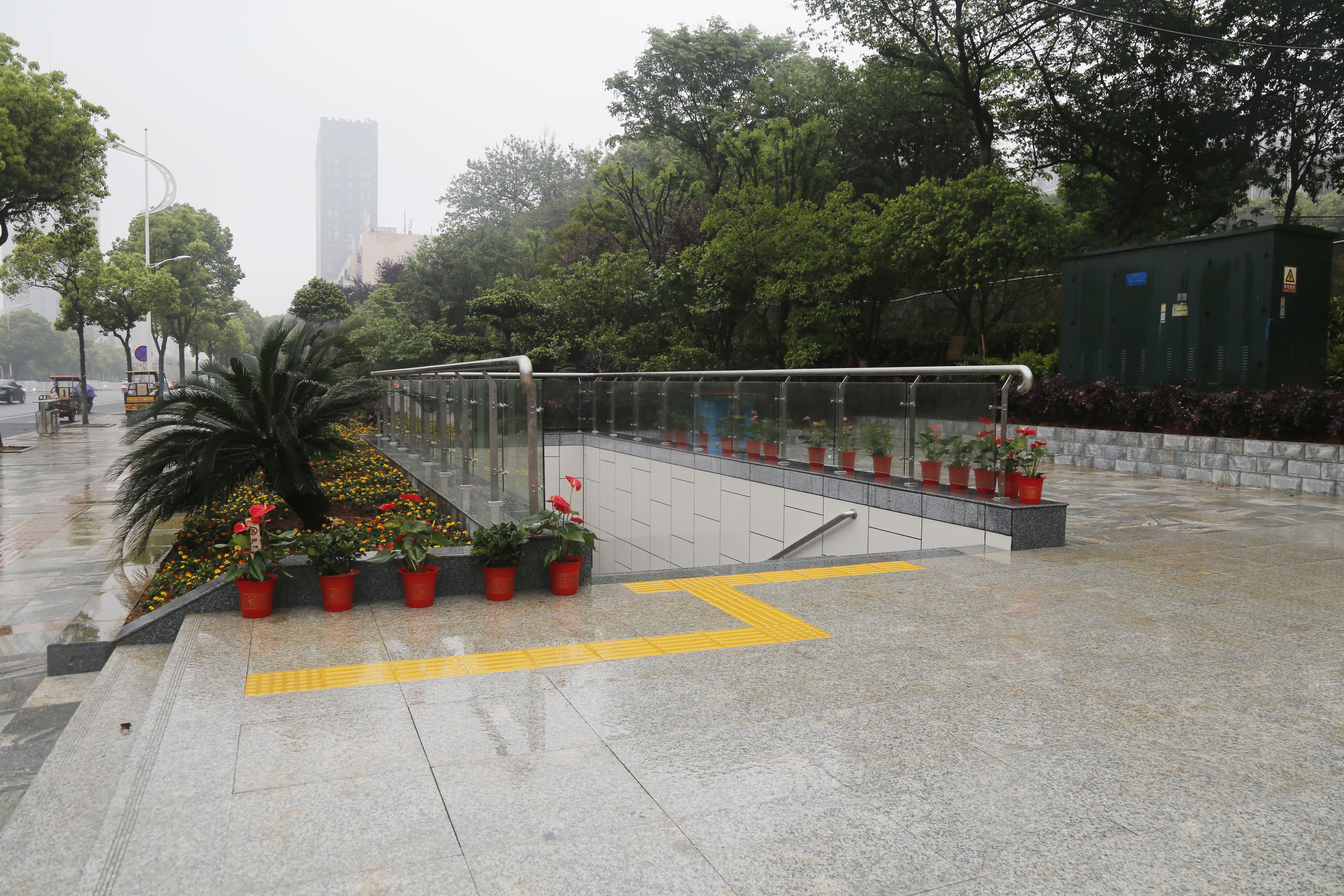 考慮到附近學(xué)生較多,通道所有的棱角都安裝了柔軟的防撞條,上下樓梯中間的行李坡道上貼上了警示標(biāo)語(yǔ),并在通道內(nèi)安裝休閑座椅和實(shí)時(shí)監(jiān)控,保障了市民學(xué)生的安全和休息。工程還按照海綿城市建設(shè)要求,考慮南方雨水天氣影響,充分發(fā)揮建筑、道路和綠地、水系等生態(tài)系統(tǒng)對(duì)雨水的吸納、蓄滲和緩釋作用,在整個(gè)通道墻體后面設(shè)置暗溝槽收納雨水,有效控制雨水徑流,保證了通道的干燥,實(shí)現(xiàn)自然積存、自然滲透、自然凈化的城市發(fā)展方式。